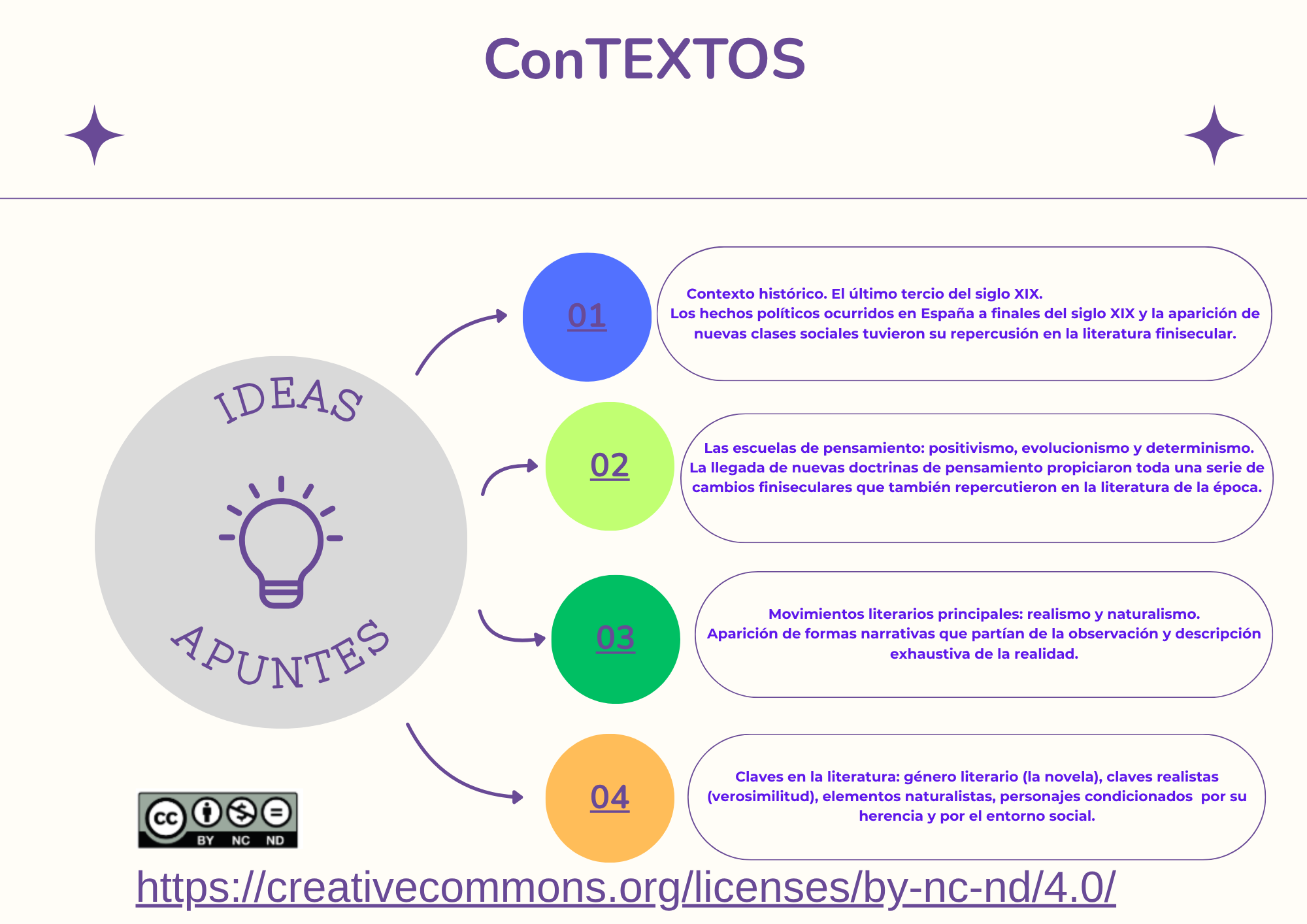 La infografía ConTEXTOS permite al alumnado recoger información de los cuatro puntos de los que ha de constar el producto final, que es un audio presentación de El realismo y el naturalismo a partir de la lectura de textos y el visionado de vídeos.