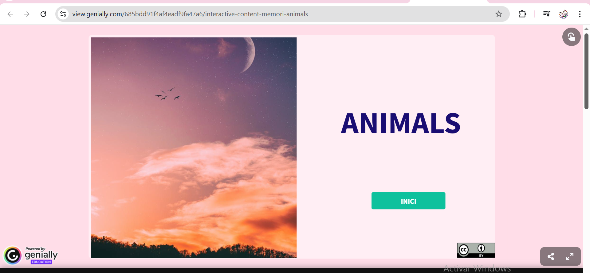 Genially amb un memory d'animals. Els alumnes han d'emparellar els animals amb l'animal que és idèntic. Han de nombrar els noms dels animals quan l'emparellen.