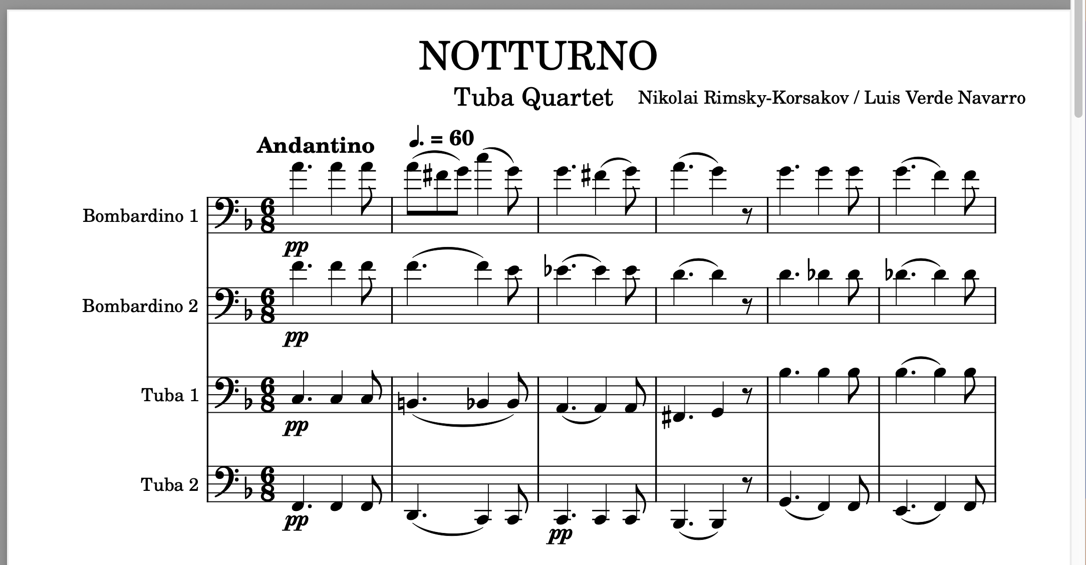 Arreglo musical para 2 bombardinos y 2 tubas del Notturno para 4 trompas de Nicolai Rimsky Korsakov