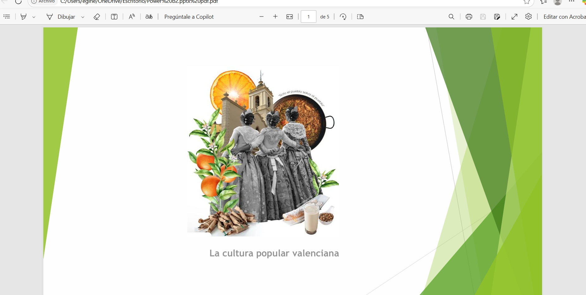 Presentació digital amb Power Point sobre la cultura tradicional valenciana; la temporalització que portarem a terme i pàgines web per facilitar la cerca d'informació i la creació de l'exposició digital amb Power Point o Genially.