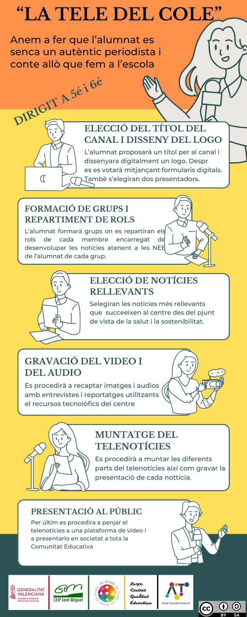 Et presentem aquesta activitat on podràs convertir el teu alumnat de 5é i 6é de primaria en autèntics periodistas que elegiran el títol del canal i el logo, redactaran les notícies més rellevants, gravaran la veu i les imatges i finalmente editaran tot l'informatiu per a presentar-lo a la Comunitat Educativa.