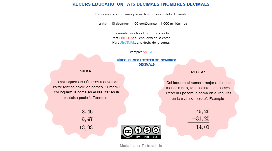 Aquest recurs educatiu és una infografia que explica la suma i la resta de nombres decimals.