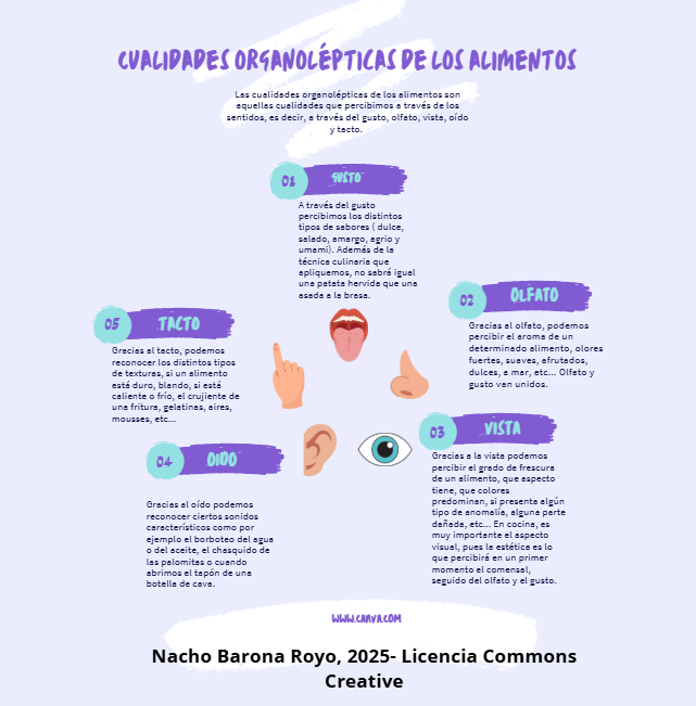 Identificación de los 5 sentidos y como identificamos con ellos las distintas cualidades organolépticas de los alimentos según la técnica aplicada.