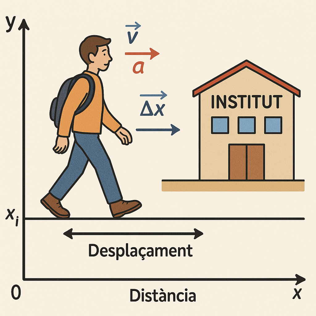 Aquest recurs és una infografia interactiva elaborada amb eXeLearning, dissenyada per a facilitar la comprensió de les magnituds fonamentals del moviment: posició, distància, desplaçament, velocitat i acceleració. El recurs inclou: - Explicacions amb text i imatges. - Gràfiques x-t i v-t. - Activitats interactives d’autoavaluació. - Adaptació per a alumnat amb necessitats específiques de suport educatiu (NESE). Emprat com activitat d´introducció de la situació d’aprenentatge “Els moviments que ens envolten”, en la matèria de Física i Química de 1r de Batxillerat.