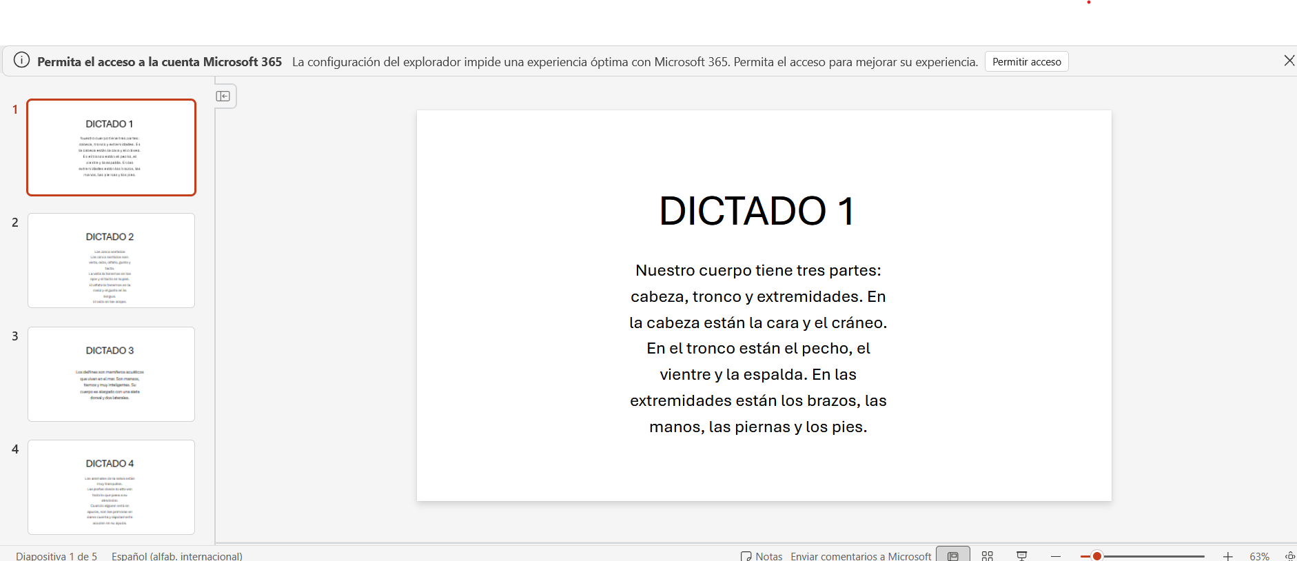 Este material se ha realizado para hacer una actividad en el aula por grupos de 4 o 5 alumnos. El coordinador del grupo elegirá uno de los 5 dictados y tendrá que hacer el dictado en movimiento, puesto que estará pegado en el pasillo del centro. La duración de la situación de aprendizaje será de 5 semanas, por lo que cada semana será un alumno el coordinador.