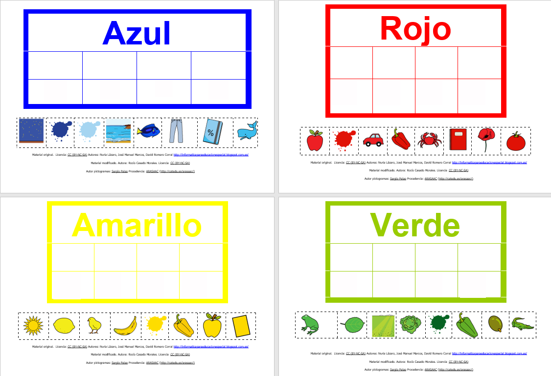 Material manipulativo para asociar diferentes dibujos a su color correspondiente. Una actividad estructurada para aprender y reforzar los colores básicos a la vez que se utiliza diverso vocabulario. Destinado a alumnado con necesidades de apoyo educativo.