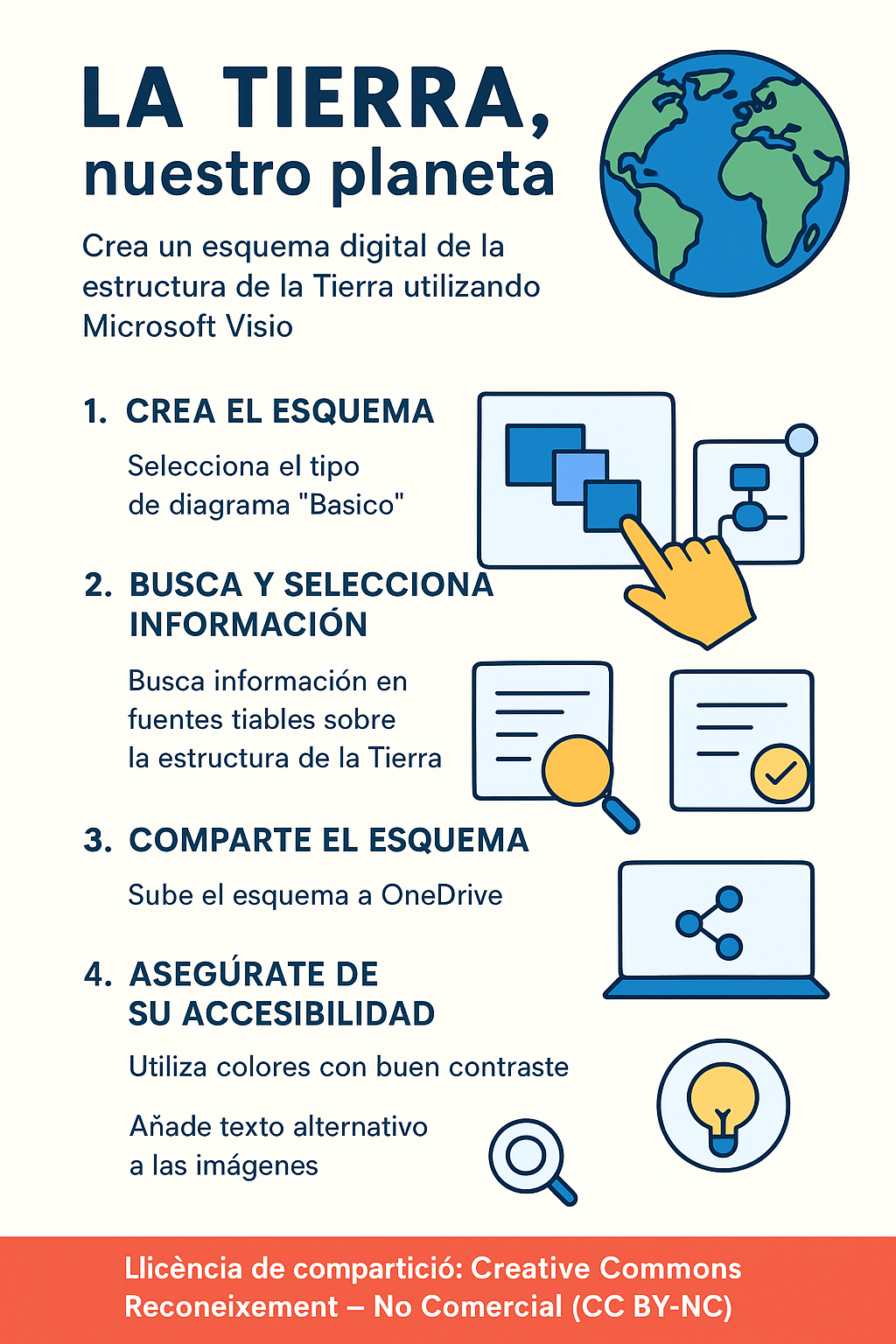 Recurso en castellano y valenciano sobre como crear un esquema en view y luego compartirlo en onedrive, utlizando el tema de la Tierra de 6 de primaria.