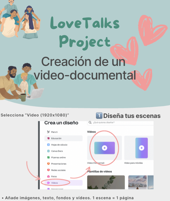 Infografía para guiar al alumnado en la creación de un video-documental a través de Canva video.