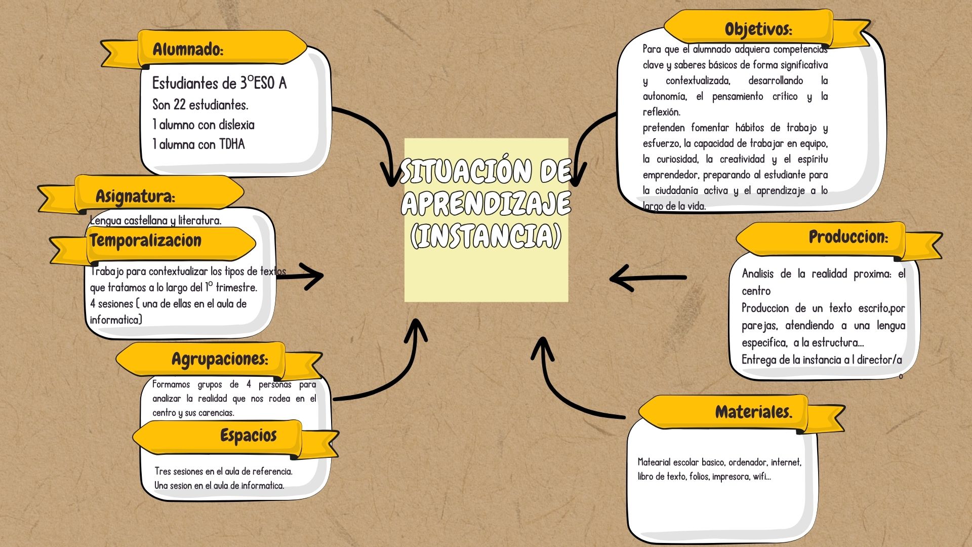 Situación de Aprendizaje en la que los estudiantes deben analizar la realidad que les rodea (en el centro), y mediante su espíritu crítico, proponer mejoras para que la vida diaria de los estudiantes del centro sea más fácil y agradable. Para conseguir este objetivo deben redactar una instancia, teniendo en cuenta la estructura de este tipo de textos, el lenguaje adecuado, firma...A continuación, Presentarán dicha instancia al director del centro.