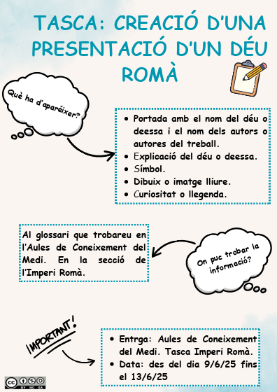 Infografia on s'expia a l'alumnat las tasca a realitzar sobre l'Imperi Romà
