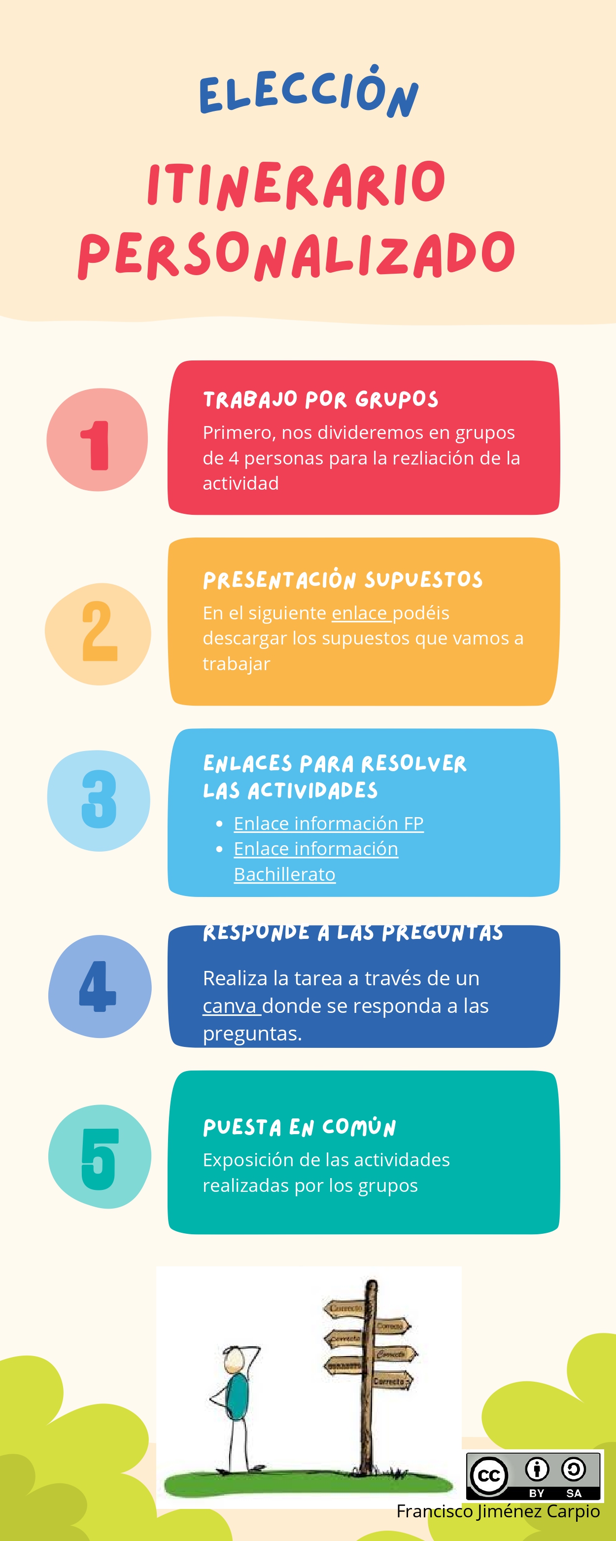 Con la presente actividad se pretende que el alumnado sea capaz de elegir su itinerario personalizado mediante la búsqueda en diferentes webs.