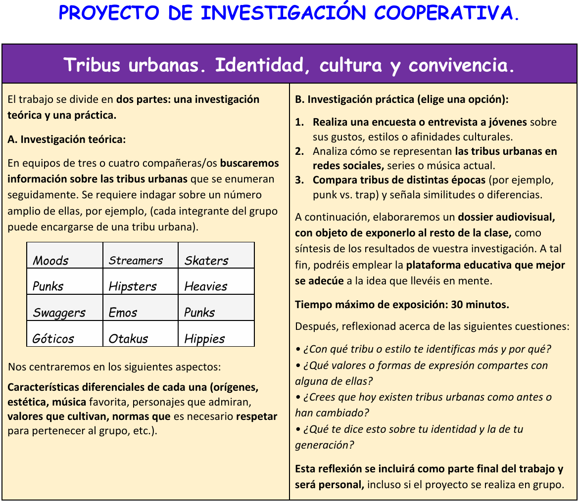 Proyecto de investigación cooperativa. Tribus urbanas. Identidad, cultura y convivencia.