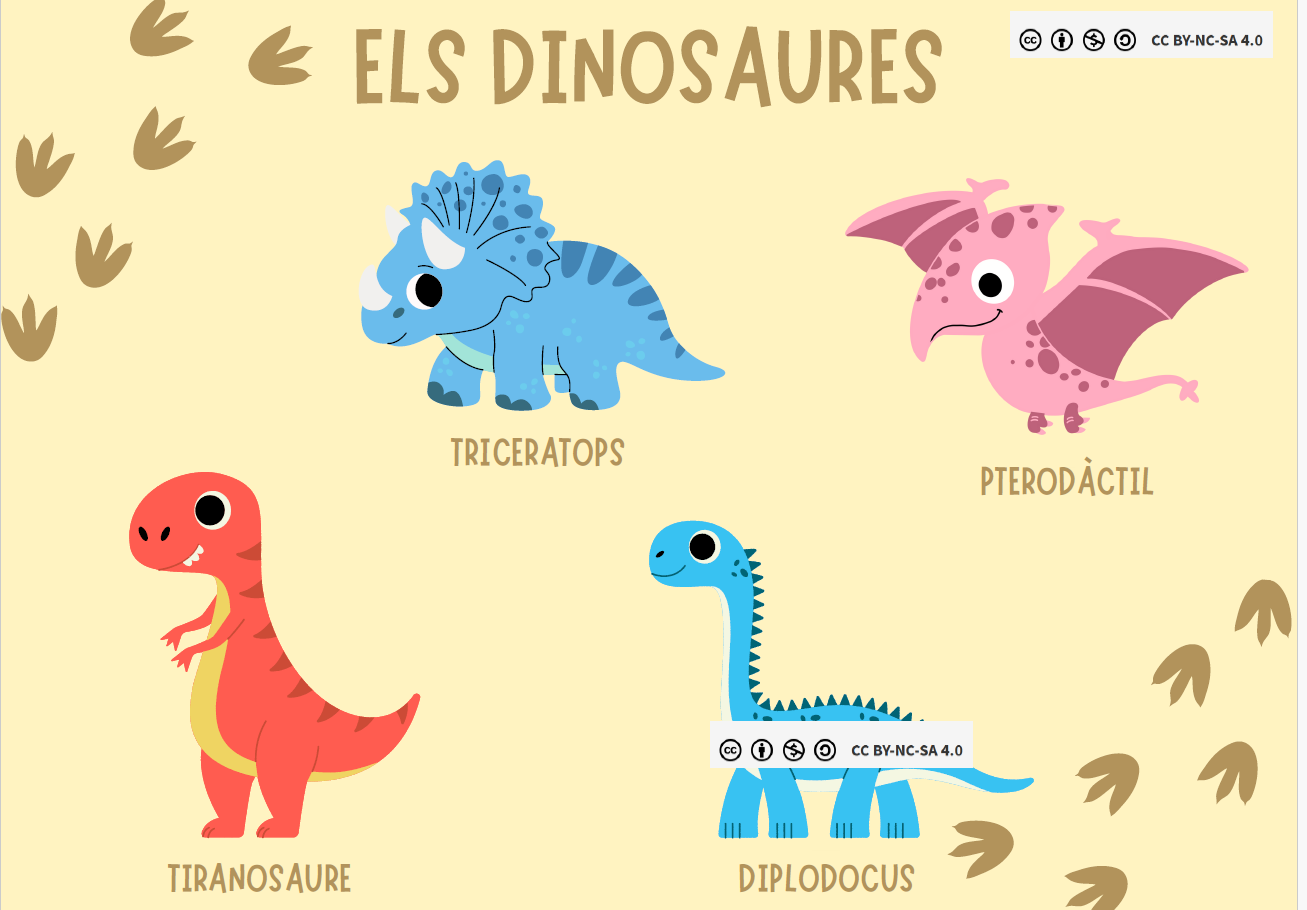 Conocer 4 tipos de dinosaurio y sus nombres, después buscarlos en un paisaje.
