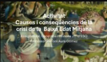 En esta activitat es reforçaran les competències específiques de la materia de geografía i història de 2n ESO i les competències claus transversals de l'àmbit sociolingüístic. L’alumnat ha de fer en la una activitat competencial en la que aplique coneixements de l’àrea de les llengües (textos) amb els sabers de la Baixa Edat Mitjana, i competències específiques de la matèria, com és l’us de la causalitat i la conseqüència, que pertany a les tècniques de la història i l’anàlisi dels esdeveniments i transformacions socials del periode baix medieval que va marcar la història d’Europa.