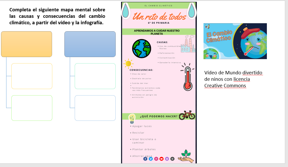 Después del visionado del vídeo y con ayuda también de la infografía tendrán que completar un mapa mental sobre el cambio climático.