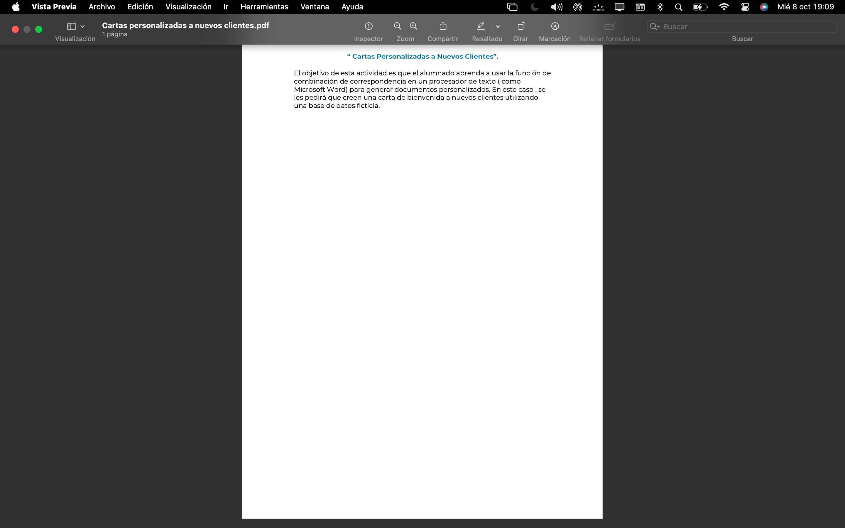 Se les pedirá que creen una carta de bienvenida a nuevos clientes utilizando una base de datos ficticia.