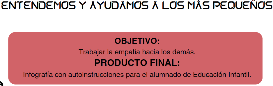 Actividad pensada para llevarse a cabo por alumnado de 3er ciclo de educación primaria. Este alumnado trabajará la empatía a través de un aprendizaje servicio, realizando materiales como las autoinstrucciones para el alumnado de infantil de su mismo colegio. Deberán averiguar primero qué es lo que necesitan los más pequeños y de qué manera podrán ayudarles mejor.
