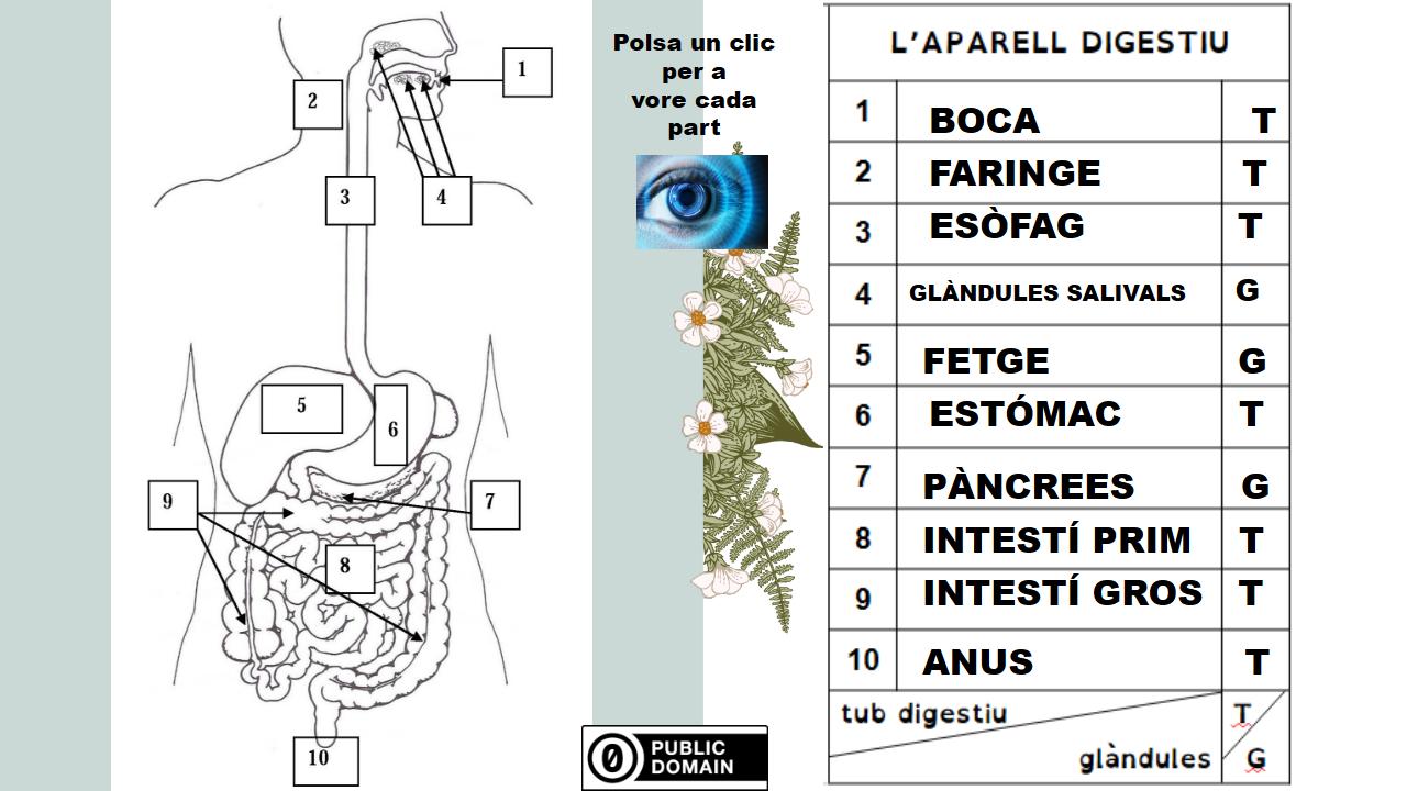 Documents per a l'àrea de Coneixement del Medi d'Educació Primària al nivell de 6é curs. Es tracta d'una presentació de diapositives sobre l'aparell digestiu, cinquena part de la Situació d'aprenentatge anomenada "La importància de la nutrició". Material d'aula del 6é nivell del CEIP Balmes de Guadassuar.