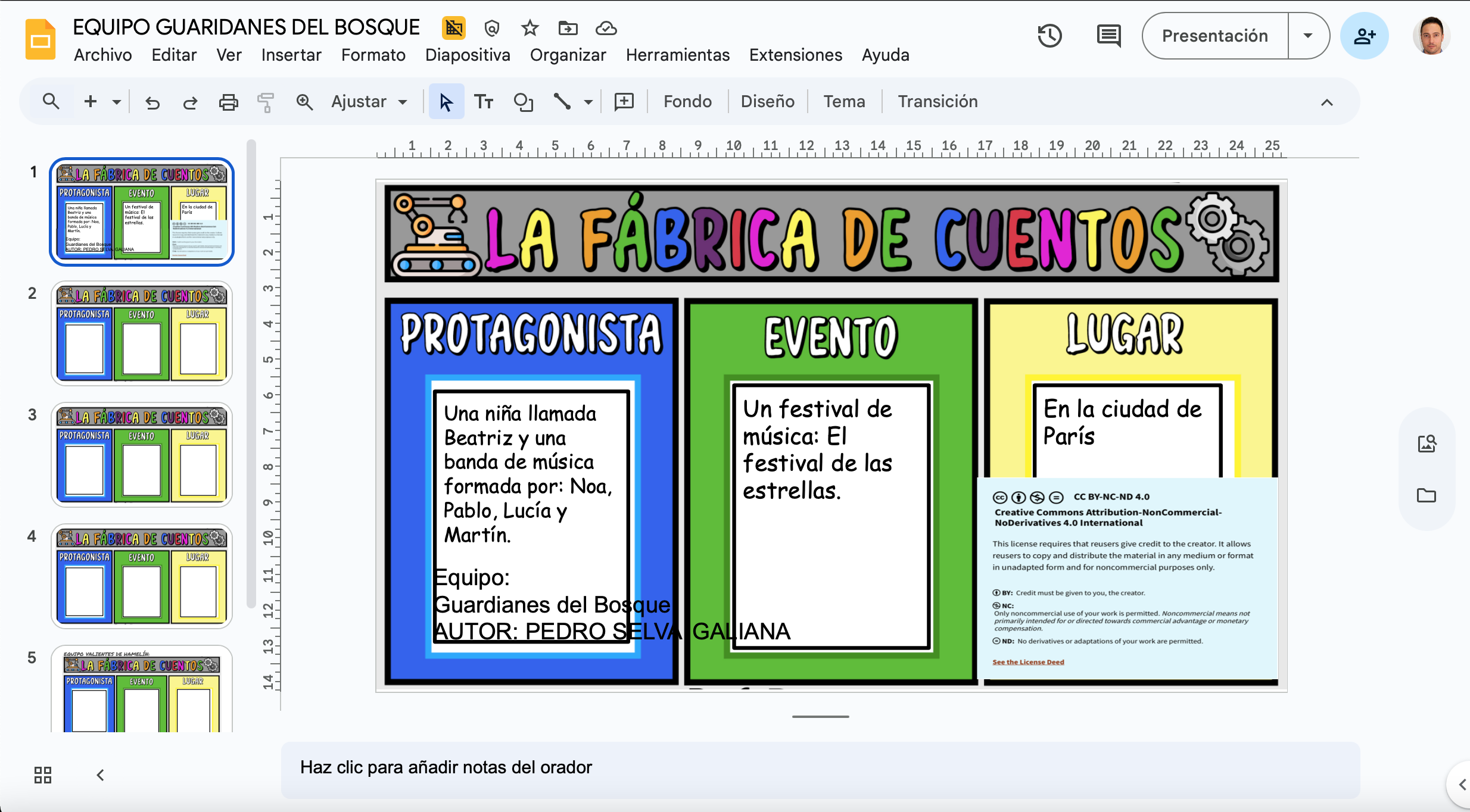 Inventamos Cuentos La actividad consiste en llevar a cabo una "fábrica de cuentos", en la que el alumnado se convierte en creador de historias. Cada estudiante debe imaginar y desarrollar un protagonista, un evento principal y un lugar donde ocurran los hechos del cuento. A partir de estos tres elementos, redactan su historia aplicando normas gramaticales y ortográficas, asegurando la coherencia y adecuación del texto. Una vez escritos los cuentos, los estudiantes revisan sus propias producciones y las de sus compañeros, con el objetivo de mejorar la estructura, la comprensión y la calidad del contenido. Finalmente, cada cuento es acompañado por una representación artística: una ilustración del protagonista, del escenario o del momento clave de la historia, utilizando distintas técnicas visuales. Así, los estudiantes no sólo desarrollan habilidades lingüísticas, sino también creativas y expresivas.