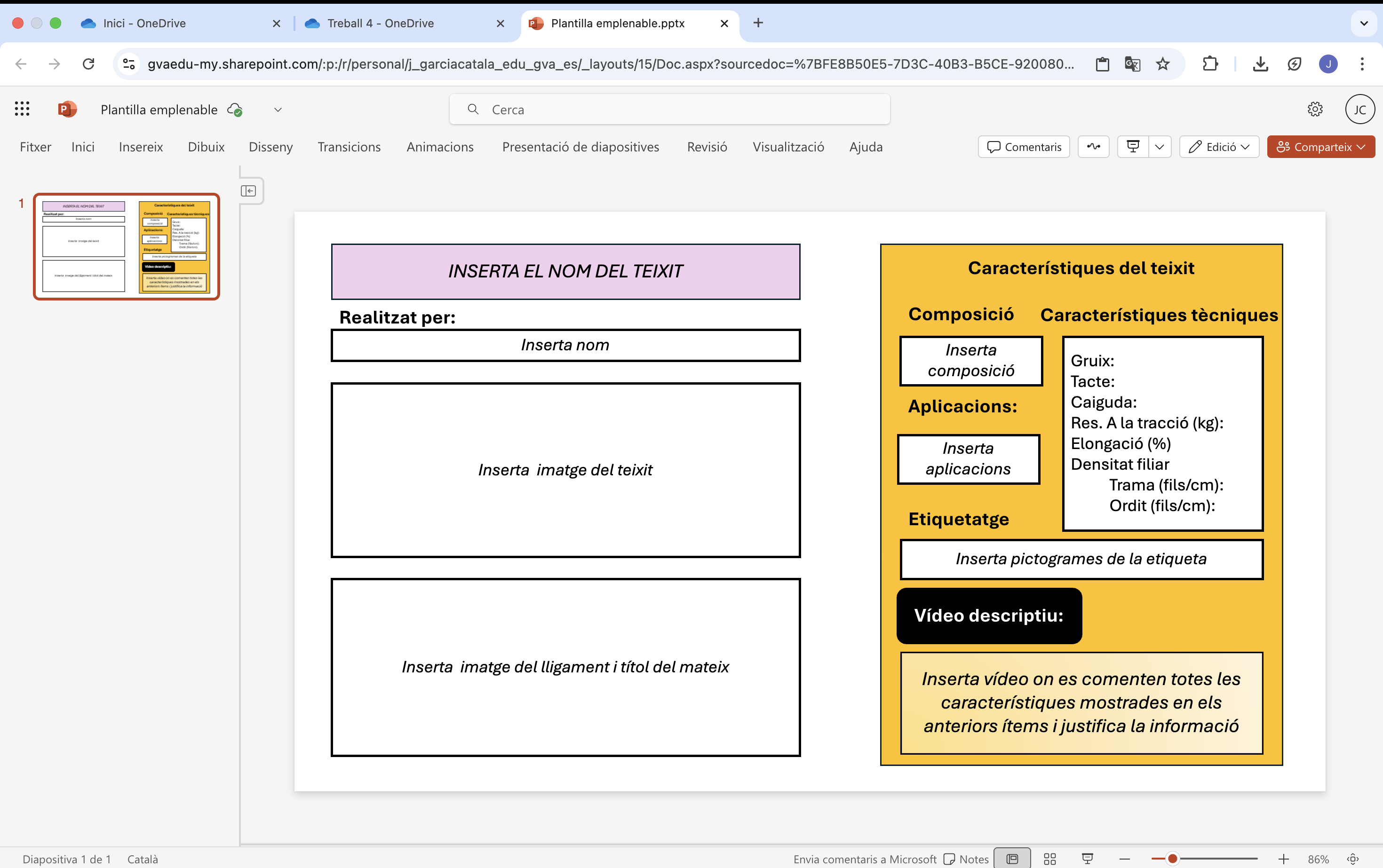 Enunciado sobre una propuesta de actividad para el módulo de materias textiles. Consiste en un catálogo de tejidos de calada que se hará mediante la aplicación de PowerPoint