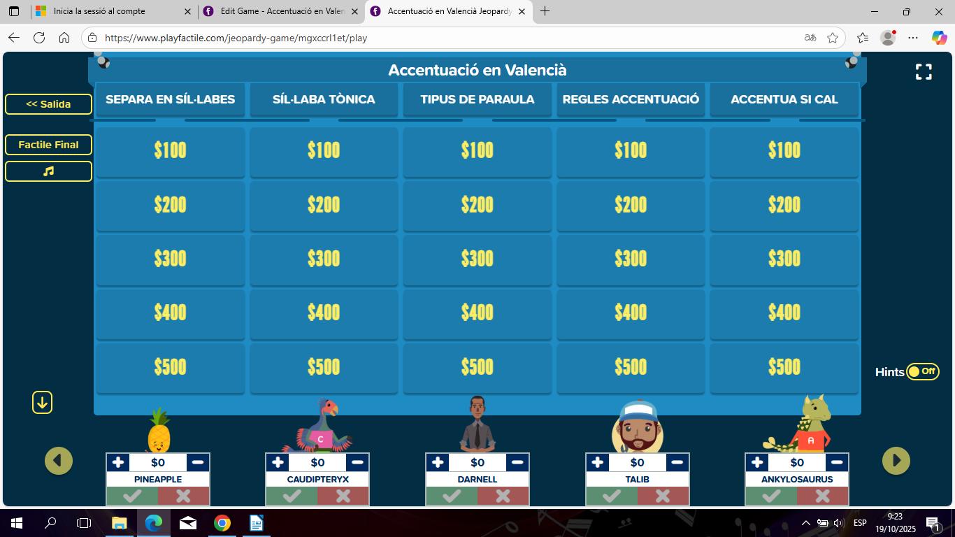 Recurs didàctic en format de joc interactiu adreçat a alumnat de 4t de Primària per a treballar de manera lúdica i motivadora l’accentuació de les paraules en valencià. A través de diferents proves i reptes, l’alumnat pot identificar i classificar paraules agudes, planes i esdrúixoles, així com aplicar les regles bàsiques d’accentuació. Ideal per a reforçar continguts de llengua valenciana i fomentar l’aprenentatge actiu.